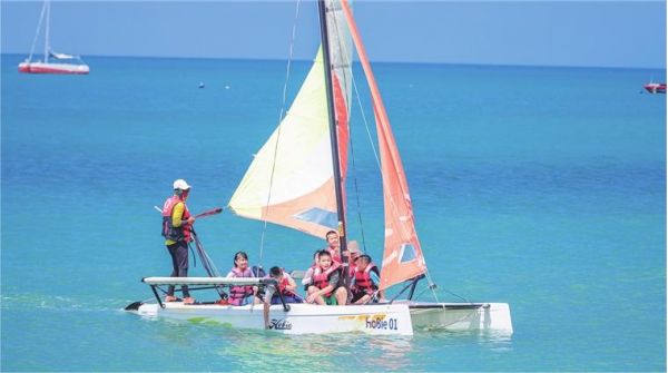 發(fā)力體育旅游,讓景區(qū)“動(dòng)力”十足。2021年,天涯海角聯(lián)手蜈支洲島籌建了西部天涯海洋運(yùn)動(dòng)俱樂部項(xiàng)目,這是三亞大膽探索國(guó)企與民企混合所有制改革試點(diǎn)的成果。在推動(dòng)傳統(tǒng)的觀光游向深度旅游體驗(yàn)轉(zhuǎn)型的過程中,天涯海角游覽區(qū)實(shí)現(xiàn)由單一的海上快艇觀光產(chǎn)品,發(fā)展為擁有二十余項(xiàng)體驗(yàn)感好、互動(dòng)性強(qiáng)、趣味性足的“海陸空”旅游產(chǎn)品,為游客體驗(yàn)高品質(zhì)水上運(yùn)動(dòng)提供了新去處。