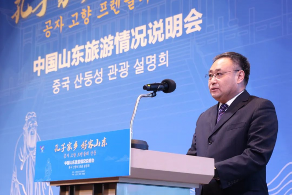 山東省文化和旅游廳二級巡視員王春生在致辭中表示,山東地處中國東部沿海,是人口大省、經(jīng)濟(jì)大省、文化大省、旅游大省?!昂每蜕綎| 好品山東”的品牌享譽(yù)海內(nèi)外。山東區(qū)位優(yōu)勢明顯,交通便捷;旅游設(shè)施完善,服務(wù)優(yōu)越;獎勵力度加大,政策優(yōu)厚。誠摯邀請韓國的新老朋友,到山東踏古尋蹤,感受歷史人文;探奇攬勝,欣賞山水畫卷;樂享人生,體驗精彩度假;大快朵頤,品味美食美酒,來一場文化之旅、觀光之旅、休閑之旅、美食之旅。