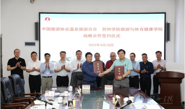 4月18日,中國旅游協(xié)會溫泉旅游分會與賀州學院簽署戰(zhàn)略合作協(xié)議,共同推進溫泉旅游高等教育,提升一線人才素質,推動溫泉產學研合作研究。