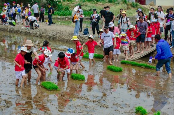 此時(shí)的長(zhǎng)安唐村,不少家長(zhǎng)帶著孩子,挽起褲腿踩進(jìn)泥土中,在園區(qū)工作人員的帶領(lǐng)下,親手栽種下一棵棵秧苗,參與作物的自然成長(zhǎng)?!?strong>很多游客都很珍惜插苗體驗(yàn)的親子時(shí)光,對(duì)他們來說這種與自然親密接觸的機(jī)會(huì)很珍貴?!眻@區(qū)一名工作人員說。