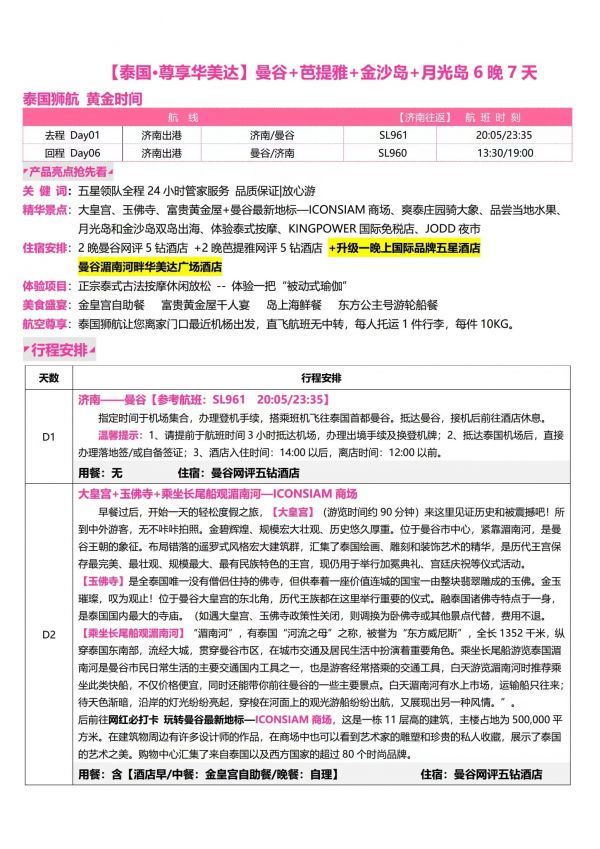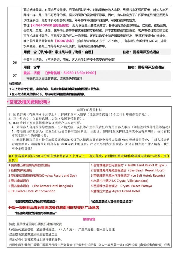 泰國7天6夜游 聊城出發(fā) 純玩 無購物 曼谷 芭堤雅 珊瑚島 金沙島 ...... 出團(tuán)日期 20230610 價格 3180 報(bào)名電話 0635 8681234