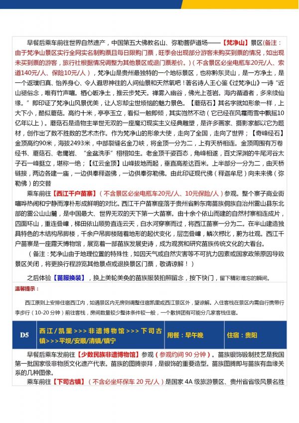 貴州6日游 聊城發(fā)團 純玩 無購物 貴陽 黃果樹 小七孔 鎮(zhèn)遠古鎮(zhèn) 梵凈山 西江 非遺博物館 下司古鎮(zhèn) 發(fā)團日期 20230619-20230624 價格 3680 報名電話 0635 8681234