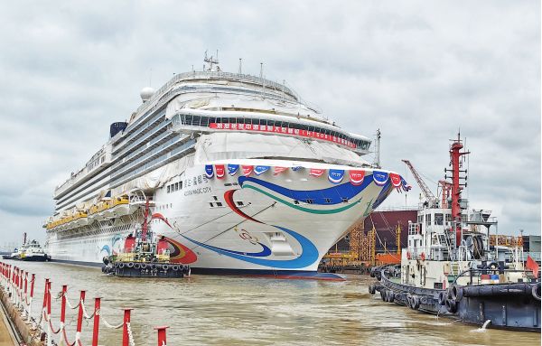 白色涂裝、流線型船體、身系“敦煌飛天彩帶”的首艘國產(chǎn)大型郵輪,取名為“愛達(dá)·魔都號”,寓意“從上海出發(fā),愛達(dá)世界”。船上融匯多元文化,通過“一船好戲”,為游客打造高端郵輪度假體驗(yàn)。比如,與中免集團(tuán)強(qiáng)強(qiáng)聯(lián)手建造海上大型免稅店、攜手上海電信創(chuàng)建有5G信號的郵輪、依托清華美院的資源和優(yōu)勢打造海上“絲綢之路”藝術(shù)空間、與喜劇品牌開心麻花推出海上專場演出等。