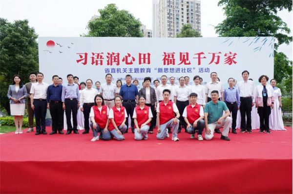 省委省直機(jī)關(guān)工委副書記吳鎮(zhèn)江在致辭中表示,省委常委、秘書長(zhǎng)、省直機(jī)關(guān)工委書記吳偕林高度重視、指導(dǎo)推動(dòng)省直機(jī)關(guān)主題教育,對(duì)高標(biāo)準(zhǔn)高質(zhì)量組織好這次“新思想進(jìn)社區(qū)”活動(dòng),讓黨的創(chuàng)新理論飛入尋常百姓家提出明確要求。在主題教育中舉辦“新思想進(jìn)社區(qū)”活動(dòng),旨在以機(jī)關(guān)帶動(dòng)基層,以黨員帶動(dòng)社會(huì),用群眾喜聞樂見的“新、活、實(shí)”形式,進(jìn)一步講好領(lǐng)袖的故事、黨的故事、新時(shí)代的故事,讓黨的創(chuàng)新理論飛入尋常百姓家,讓廣大人民群眾在主題教育中共同感悟思想偉力,凝聚奮進(jìn)力量。