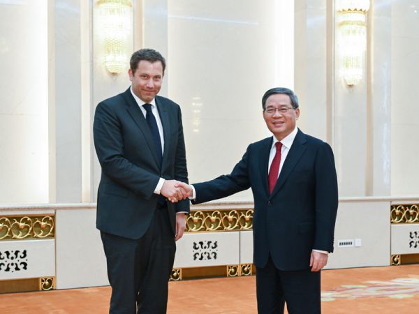 6月5日下午,中共中央政治局常委、國務(wù)院總理李強(qiáng)在人民大會(huì)堂會(huì)見由德國社會(huì)民主黨聯(lián)合主席克林貝爾率領(lǐng)的代表團(tuán)。