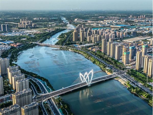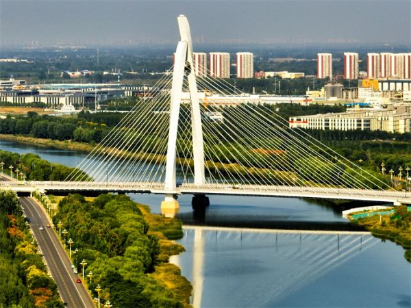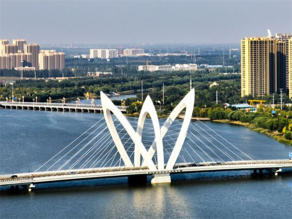 中華路大橋用獨(dú)特的造型,給徒駭河增添了無數(shù)風(fēng)采。