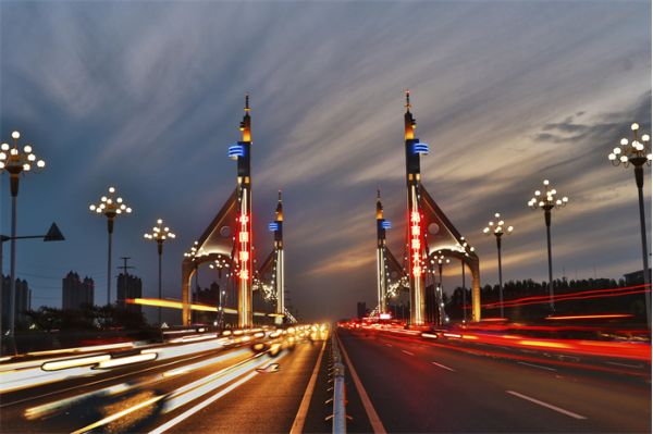 興華路徒駭河大橋全長近384米,大橋采用雙向6車道設(shè)計(jì),很是雄偉壯觀。