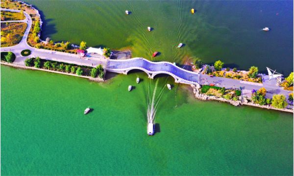 聊城人很愛東昌湖,于是找到了各種方法來欣賞東昌美景,走一走二十一孔橋,也是必打卡的一種方式了。
