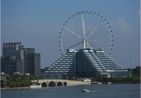 中華路徒駭河大橋的橋塔造型在設(shè)計(jì)的時候,便融合了水城的概念,將一顆圓潤的明珠托舉在空中旋轉(zhuǎn),朦朧的夜色之下,現(xiàn)代的霓虹燈柔和又絢爛。