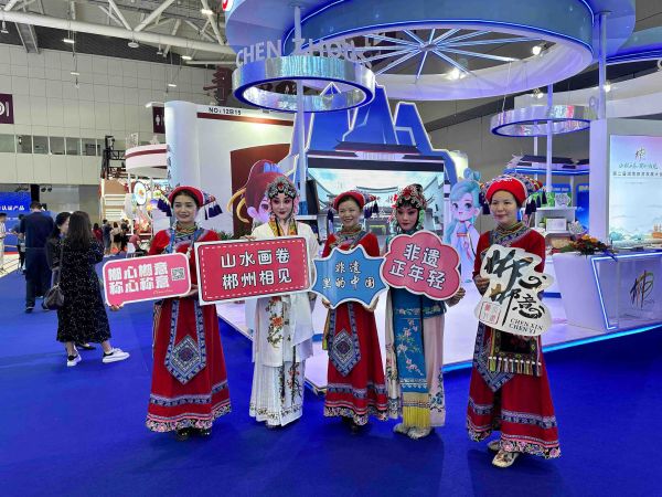 緊鄰湖南展館的郴州展館以郴州文旅資源為主打,設(shè)置郴州文旅資源展區(qū),以燈箱廣告形式展示天下莽山、溫泉之都、碧水丹霞等8張名片。展區(qū)內(nèi)還設(shè)置了“郴品郴味”地方美食特產(chǎn)展區(qū)和“郴心郴意”文創(chuàng)非遺展區(qū),推介郴州美食,展示大布江拼布繡、湘南木雕、桂陽(yáng)剪紙等非遺項(xiàng)目及文創(chuàng)產(chǎn)品。