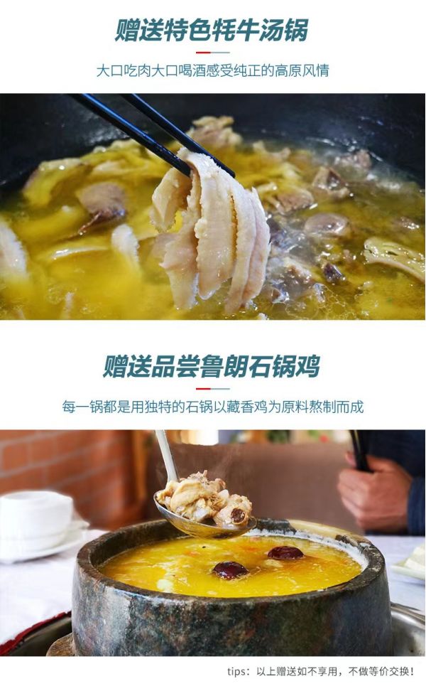 l 贈送2頓特色餐(1頓特色牦牛湯鍋+1頓魯朗石鍋雞);