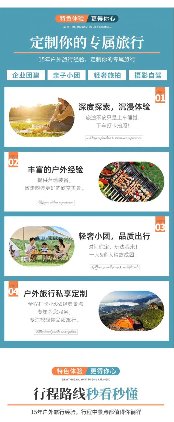 私人訂制:我們業(yè)務范圍囊括了全國各大城市,川西、西北、新疆、西藏,在路上永遠有我們的身影。我們將為每一個有定制需求的你策劃出獨屬于自己的完美旅行。