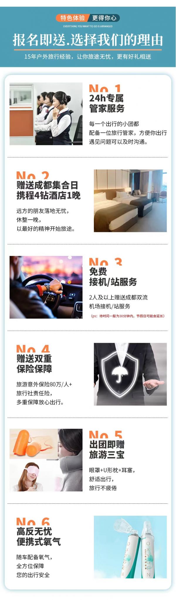 1、關于車輛交通:目前四川旅游市場8座以下車輛無法辦理旅游牌照,請游客知悉,以此理由提起的投訴我方拒不受理,望您諒解。