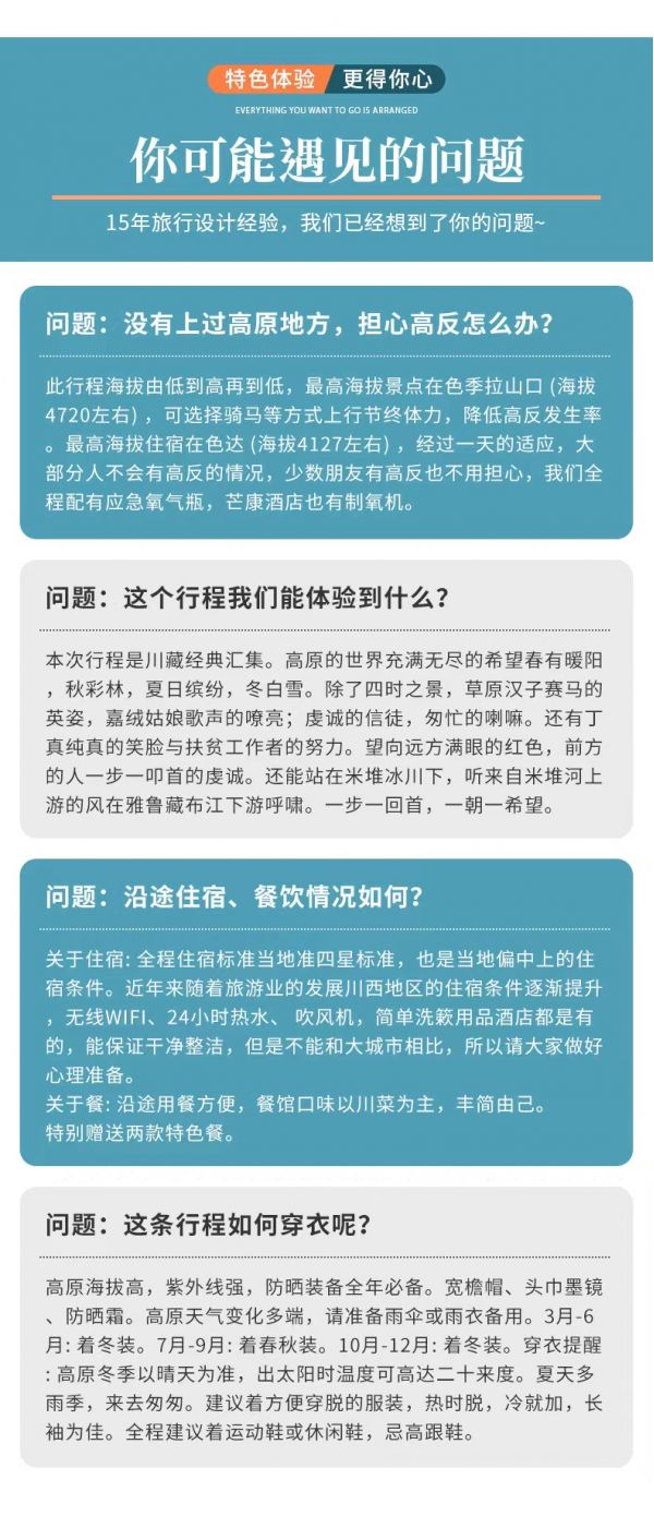請對應使用我方色稻川藏11日行程,因使用其它行程造成的投訴,責任自負;請仔細閱讀以上行程文檔,同意并保證遵守我方安排,以免為您帶來不必要的麻煩;如產(chǎn)生合同糾紛或人身意外事故,按《中華人民共和國合同法》、《道路交通法》、《保險賠償條例》裁定;本行程作為旅游合同附頁與旅游合同同等法律效力。