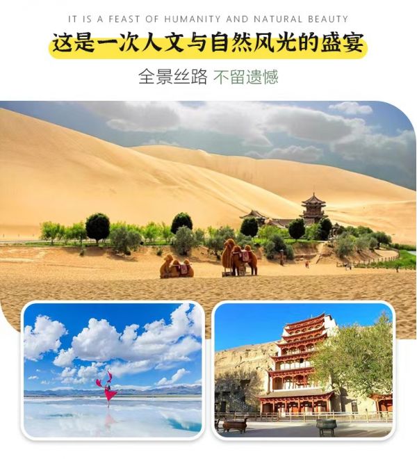 1. 敦煌莫高窟景區(qū)自2015年6月起實(shí)行數(shù)字展示中心數(shù)字洞窟展示和莫高窟實(shí)體洞窟體驗(yàn)的預(yù)約參觀模式,每天限6000人參觀,團(tuán)隊參觀時間嚴(yán)格按照莫高窟預(yù)約場次進(jìn)行,因此,敦煌段景點(diǎn)參觀順序會根據(jù)莫高窟時間進(jìn)行調(diào)整或同團(tuán)客人安排不同時間游覽,敬請配合。
