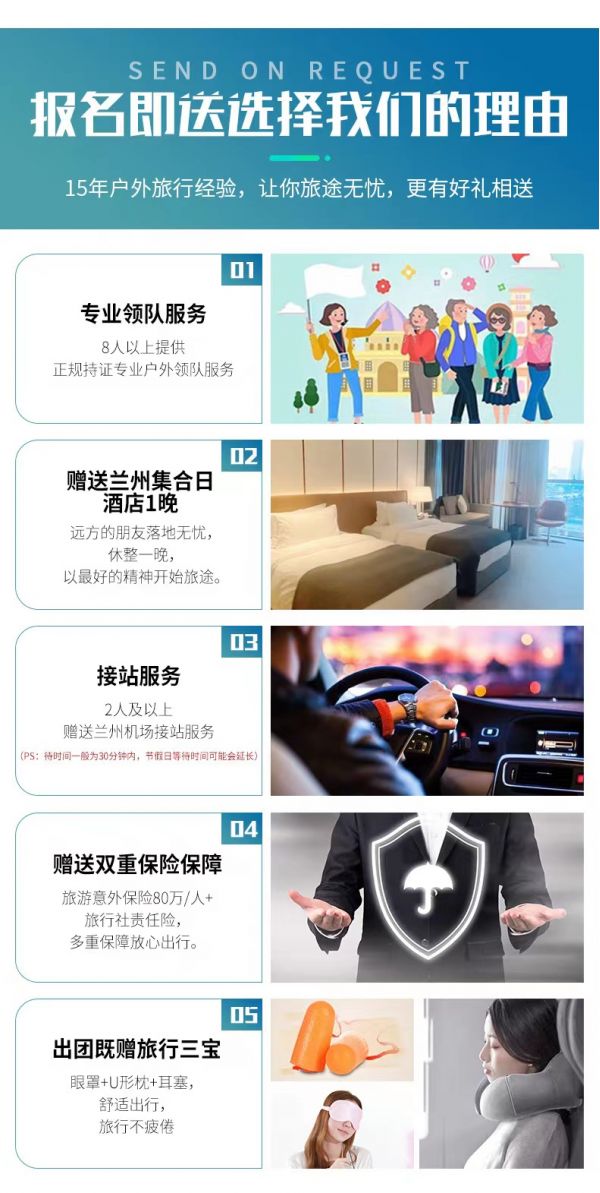 (2)贈(zèng)送4人及以上蘭州市區(qū)接機(jī)/接火車服務(wù),23點(diǎn)后由于運(yùn)管規(guī)定不能接機(jī)/接站,敬請(qǐng)諒解;
