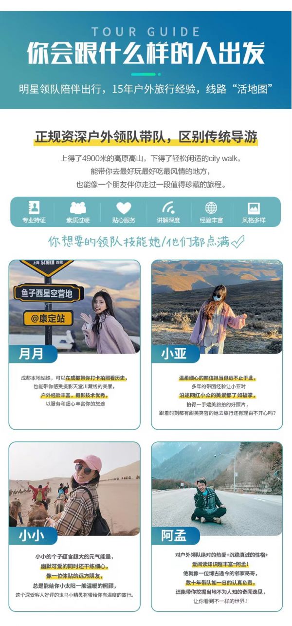 私人訂制:我們業(yè)務(wù)范圍囊括了全國(guó)各大城市,川西、西北、西藏、新疆,在路上永遠(yuǎn)有我們的身影。我們將為每一個(gè)有定制需求的你策劃出獨(dú)屬于自己的完美旅行。