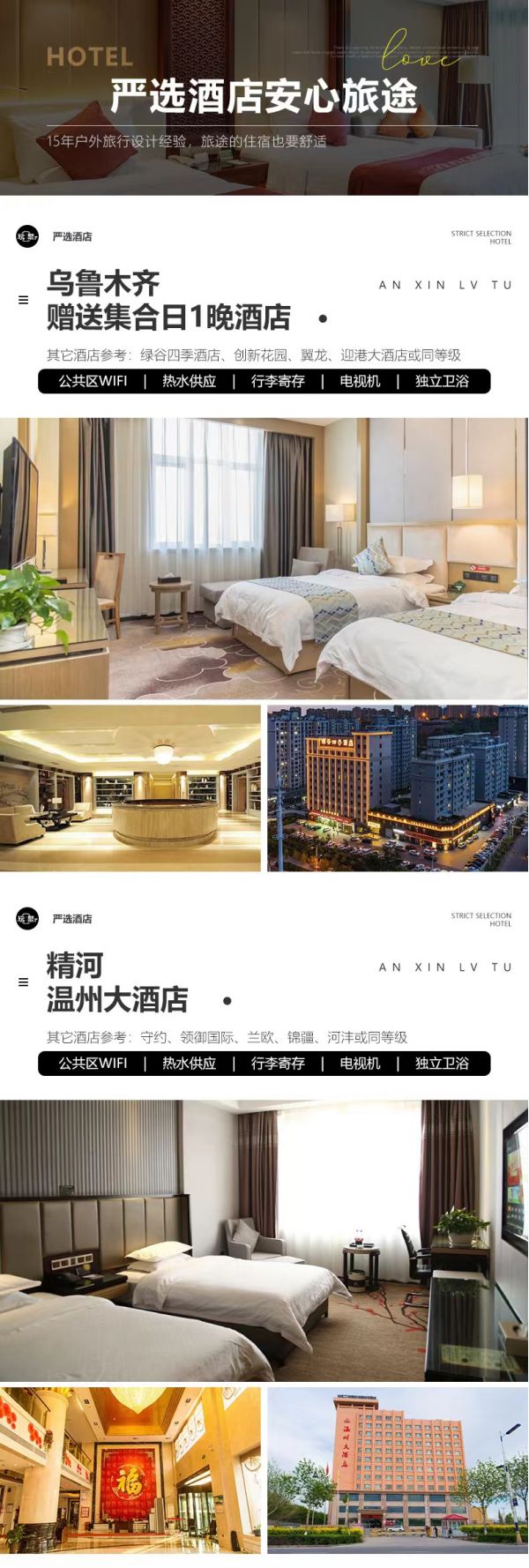 住宿:行程所列7晚住宿。我們會提供行程內(nèi)展示照片的酒店或其他條件相似酒店,但因沿途條件有限,如酒店設(shè)施達不到您的期望,請您諒解。參考酒店如下: