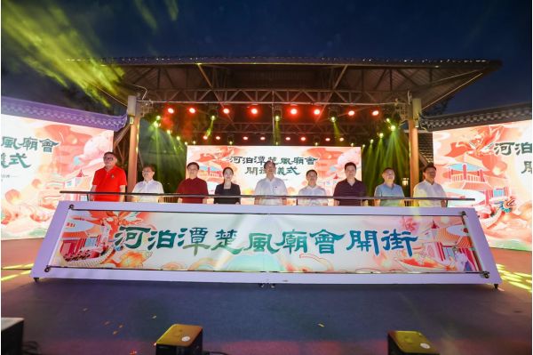 開街儀式以“楚風(fēng)+晚會”的模式進行,儀式之后,廟會3個小舞臺也陸續(xù)上演精彩節(jié)目。在橘頌廣場的民俗舞臺上,火把舞、上刀山、雜技蹬缸、變臉、柔術(shù)表演輪番上演。在離騷廣場的非遺舞臺,皮影木偶戲驚艷亮相。在華麗精致的畫舫游船上,舞蹈演員伴著古樂翩翩起舞,為游客呈獻了新穎的“水上視覺盛宴”。當(dāng)晚,主舞臺還有非遺傳承人帶來的茶館評書。