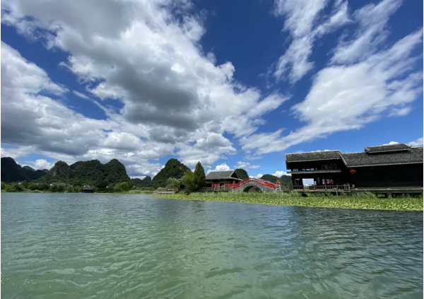 高六米的大型漢白玉劉三姐塑像、碩大的多種石雕繡球、還原當(dāng)年劉三姐與阿牛哥定情誓約的百年古榕、以及風(fēng)雨長(zhǎng)廊、壯寨干欄、瑤寨木樓、侗族鼓樓等均全國(guó)少見(jiàn)。再現(xiàn)電影《劉三姐》中莫府、阿牛家等場(chǎng)景,經(jīng)典劇場(chǎng)中的“民族歌舞秀”讓您親身領(lǐng)略少數(shù)民族的獨(dú)特風(fēng)情。