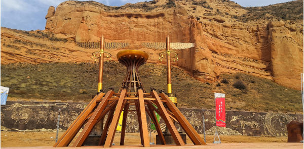 井部落文化廣場(chǎng)以當(dāng)?shù)爻鐾恋纳尘幕拍惯z址為文化線索,結(jié)合現(xiàn)有的鷹巖崖壁景觀和山谷平地,以出土“鷹”首杖的“鷹”為圖騰元素,規(guī)劃“鷹巖祭天”活動(dòng)場(chǎng)景。這里的摩崖石刻藝術(shù)地展現(xiàn)了古絲綢之路的繁華盛況,可以讓人穿越時(shí)空,回味沙井文化歷史。