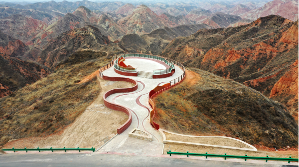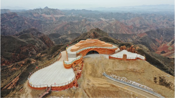 絲路霞光觀景平臺(tái)以丹霞風(fēng)貌作為設(shè)計(jì)背景切入,大面積采用流線型設(shè)計(jì)手法,將一帶一路的精神貫穿始終