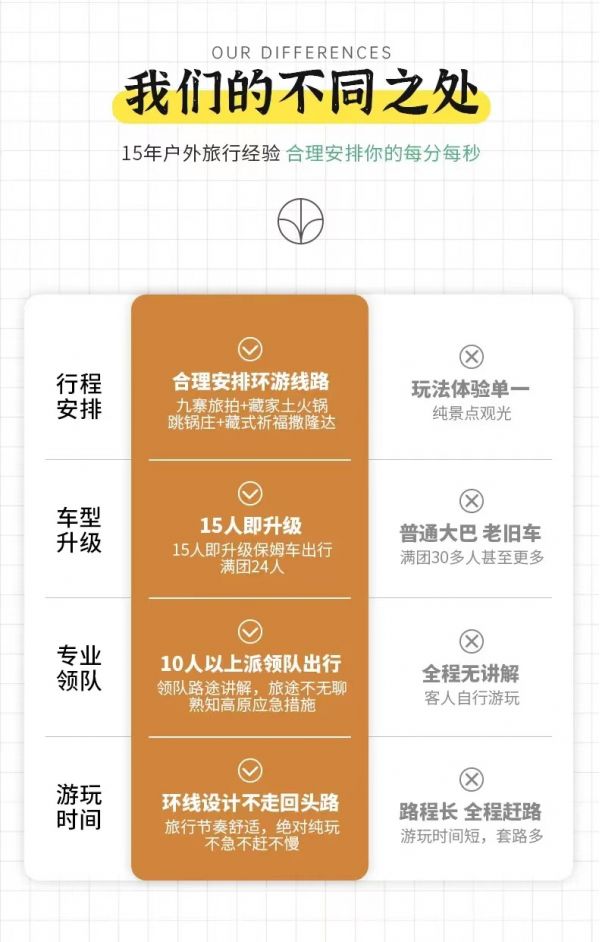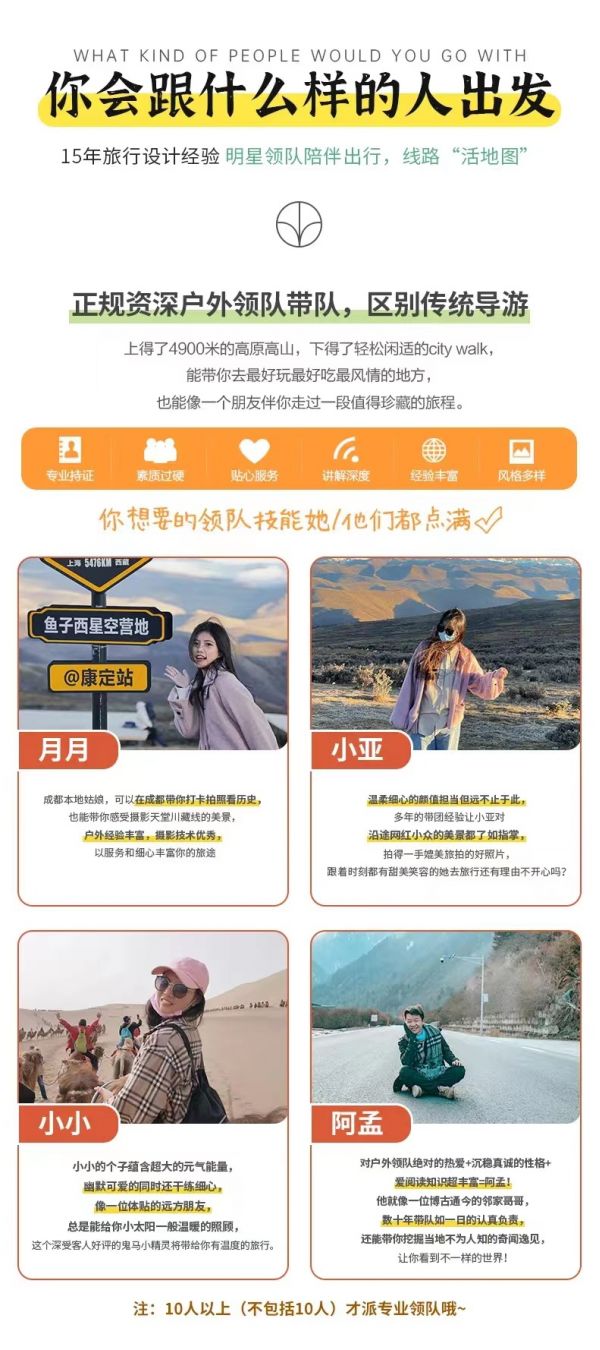 私人訂制:我們業(yè)務(wù)范圍囊括了全國各大城市,川西、西北、新疆,在路上永遠(yuǎn)有我們的身影。我們將為每一個(gè)有定制需求的你策劃出獨(dú)屬于自己的完美旅行。