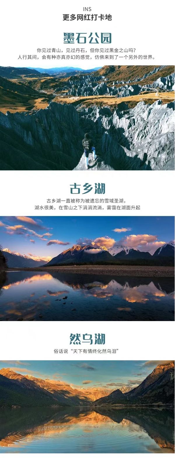 溫馨提示:(1)冬季11月-次年3月如因魚(yú)子西/格底拉姆封山無(wú)法前往,則將魚(yú)子西/格底拉姆景點(diǎn)換為八郎生都。