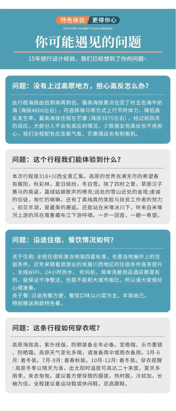 3、沿途系藏族地區(qū),請(qǐng)游客尊重當(dāng)?shù)刈诮绦叛?、民俗民風(fēng),遵守景區(qū)規(guī)定。