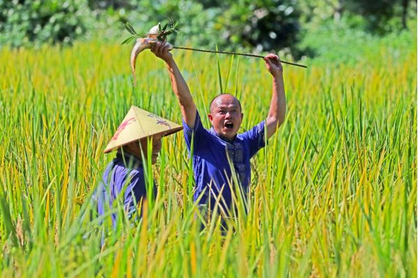 近年來(lái),廣西柳州三江侗族自治縣大力推動(dòng)農(nóng)旅融合發(fā)展,依托當(dāng)?shù)靥厣弊鍌鹘y(tǒng)民俗,在程陽(yáng)八寨等景區(qū)及各鄉(xiāng)村旅游點(diǎn)推出稻田捕魚(yú)體驗(yàn)、水稻收割體驗(yàn)、稻谷脫粒展示等豐富多彩的農(nóng)事互動(dòng)體驗(yàn)活動(dòng),豐富了鄉(xiāng)村旅游內(nèi)容,受到游客歡迎。