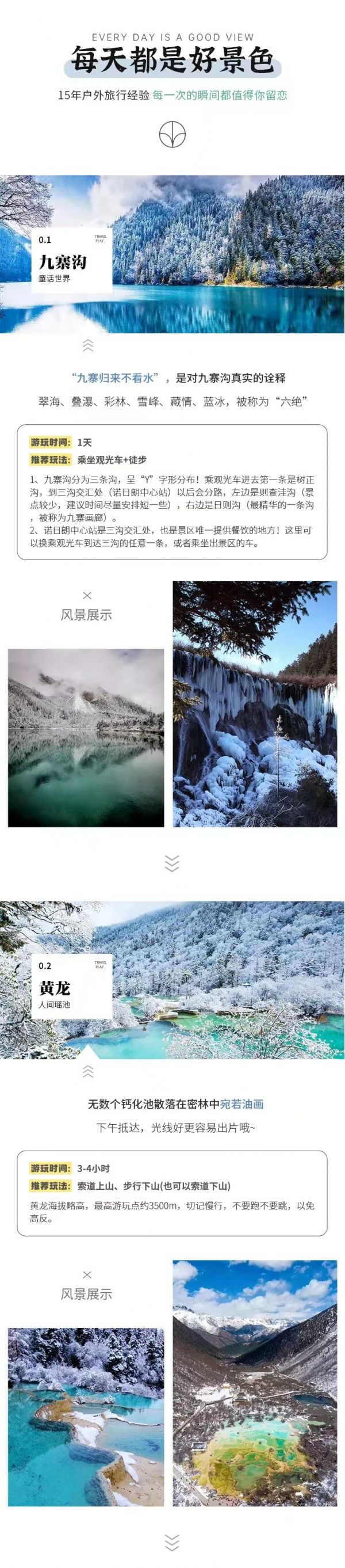 (4)冬季黃龍景區(qū)索道停運,游覽景區(qū)以徒步游覽為主,游客朋友根據(jù)自身體力進行選擇游玩量力而行。