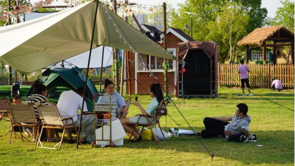 在城市近郊,“沉浸式”“慢節(jié)奏”的游玩方式受到青睞?!拔覀兲氐靥崆邦A(yù)訂了帳篷,帶家人來(lái)體驗(yàn)清晨看日出、晚上數(shù)星星的奇妙之旅,孩子們特別喜歡這次露營(yíng)體驗(yàn)?!币瞬忻裰軉陶f(shuō)。
