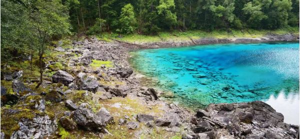 九寨溝四季景色各異:仲春樹綠花艷,盛夏幽湖翠山,金秋盡染山林,隆冬冰塑自然。雪峰、翠海、疊瀑、藍(lán)冰、彩林、藏情,“九寨六絕”倍受世人青睞。——湖水終年碧藍(lán)澄澈,古樹環(huán)繞,奇花簇?fù)?,宛若鑲上了美麗的花邊,各具特色?