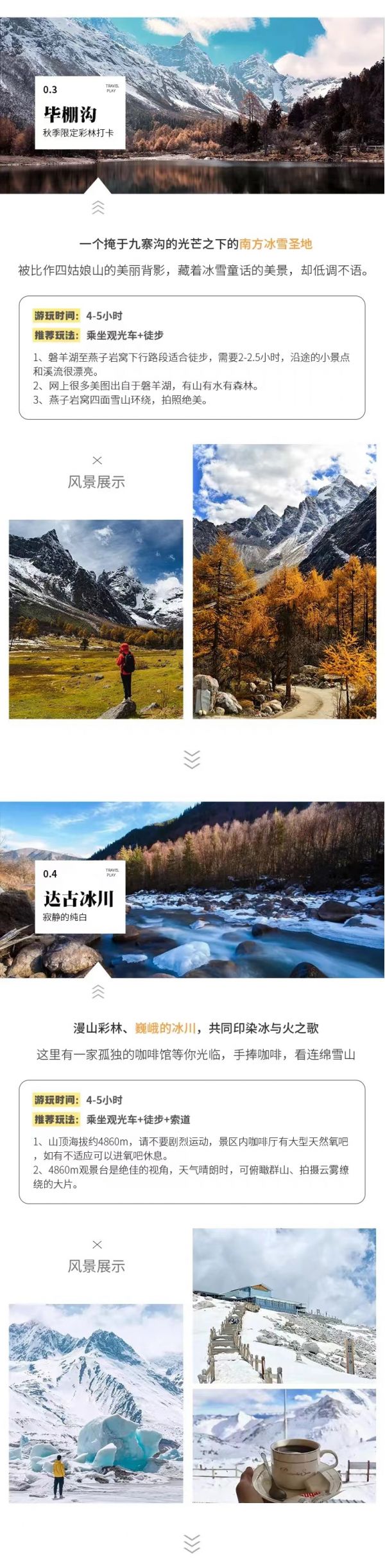 隨后游覽【紅軍湖】、【紅軍橋】、【神牛湖】,欣賞沿途的美景。后到達索道下站,也就是觀光車終點站,從這里開始就是達古冰川的精華景點,10-11月紅葉彩林漫山遍野,層林盡染,猶如一幅彩色油畫。我們可以在索道下站坐索道直接上到山頂?shù)谋ǜ沟?,看連綿雪山冰川,觀賞【一號冰川】,感受一覽眾山小,俯視一切的雄壯氣概。還可以在世界上海拔最高的咖啡館,同時也被稱為【世界上最孤獨的咖啡館】,喝上一杯咖啡,飽覽美景。看過冰山下的秋景前往黑水縣入住。
