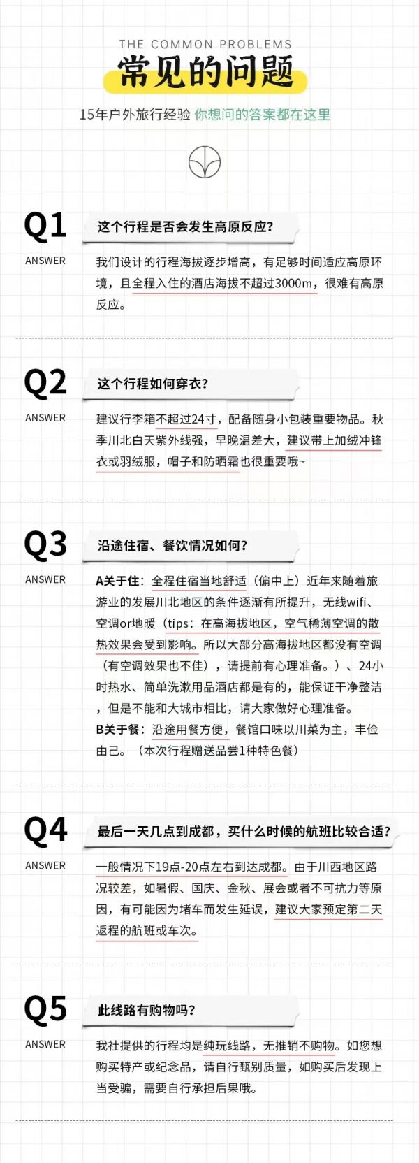 (1)服裝:高原地區(qū)晝夜溫差較大,早、晚氣溫偏低,要注意防寒保暖,建議準(zhǔn)備防風(fēng)的外套、沖鋒衣、防寒羽絨服。