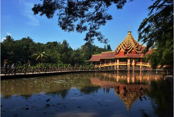 早餐:酒店早餐 中餐:孔雀宴 晚餐:自理早餐后,乘車(chē)抵達(dá)扶貧旅游示范村,參觀【傣族文化村落】(游覽時(shí)間約180分鐘),是西雙版納唯一集中展示傣族歷史、文化、宗教、體育、建筑、生活習(xí)俗、服飾、飲食、生產(chǎn)生活等為一體的民俗生態(tài)旅游精品景區(qū)。幢幢精巧別致的傣家竹樓和佛寺古塔掩映在綠樹(shù)叢中,透著一種自然、純樸、寧?kù)o。這里江湖環(huán)抱、綠樹(shù)掩映,花果飄香,梵音繚繞,給人一種神秘,祥和的感受。在這里人與人、人與自然和諧相處 , 這是傣家人的勐巴拉納西,傣家人的人間天堂.大家可以體驗(yàn)濃郁的傣家生活習(xí)俗, 觀賞典型的干欄式建筑、傳統(tǒng)的手工藝制作、傣族民間歌舞,以及接觸到神秘的小乘佛教文化。后前往游覽【勐泐大佛寺】(游覽時(shí)間約 120 分鐘,電瓶車(chē)自理單程 40 元/人、往返 60/人,建議乘坐單程)。國(guó)家AAAA級(jí)景區(qū),也是傣王故宮遺址的重要部分,勐泐大佛寺是在古代傣王朝的皇家寺院"景飄佛寺"的原址上恢復(fù)重建的,"景飄佛寺"是傣族歷史上一位名叫撥龍的傣王為紀(jì)念病故的王妃南紗維扁而修建,從萬(wàn)佛塔前廣場(chǎng)俯視景洪市景,旖旎的熱帶風(fēng)光盡收眼底,景區(qū)以弘揚(yáng)“南傳佛教文化”為中心,也可參與傣家潑水狂歡活動(dòng),與雨林精靈——孔雀親切互動(dòng),看孔雀齊飛盛景、明鏡臺(tái)-玻璃棧道 由景區(qū)山頂向景洪市區(qū)方向延伸,是跨度長(zhǎng)45米,寬度24米,總面積約800m的懸空玻璃觀景平臺(tái),取偈語(yǔ)“身是菩提樹(shù),心如明鏡臺(tái)”,打造“明鏡菩提”的獨(dú)特意境。