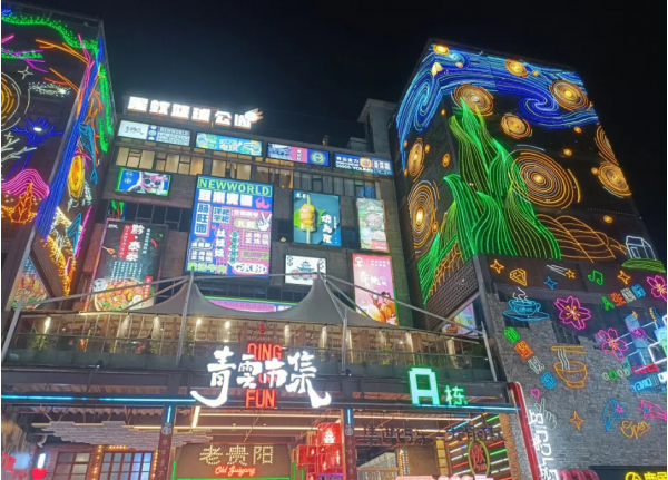 結(jié)合了游玩、餐飲美食、潮流文創(chuàng)、休閑娛樂、運(yùn)動體驗等豐全方位豐富多彩的“網(wǎng)紅街”。特別是滿街燈光渲染的文藝設(shè)計和文字圖案,構(gòu)成了這個號稱貴陽最適合打卡拍照、游玩、品美食的休閑好去處。