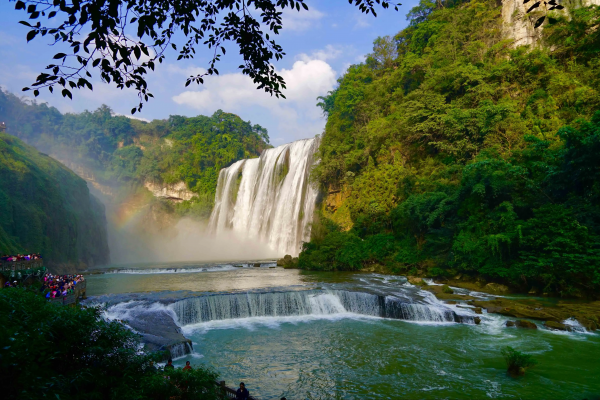 1.黃果樹(shù)瀑布自明代旅行家徐霞客目睹到它以后,黃果樹(shù)瀑布便吸引著一代代慕名者前來(lái)游歷。瀑布高77.8米,寬101米,水勢(shì)浩大、連綿不絕。黃果樹(shù)瀑布,安順市鎮(zhèn)寧布依族苗族自治縣,是珠江水系打邦河的支流白水河九級(jí)瀑布群中規(guī)模最大的一級(jí)瀑布。瀑布集高、大、多、美、奇諸多特點(diǎn)于一身,站在大坡頂遙望整個(gè)瀑布,瀑布就恍如身著白色衣裙的天仙,儀態(tài)萬(wàn)方地從萬(wàn)頃冷綠中露出她的身姿。來(lái)到黃果樹(shù)瀑布才知道,世間竟有將雄壯與柔美結(jié)合如此之好的景色。橫跨瀑身的水簾洞,可以近距離感受大瀑布的沖擊力,不可錯(cuò)過(guò)。