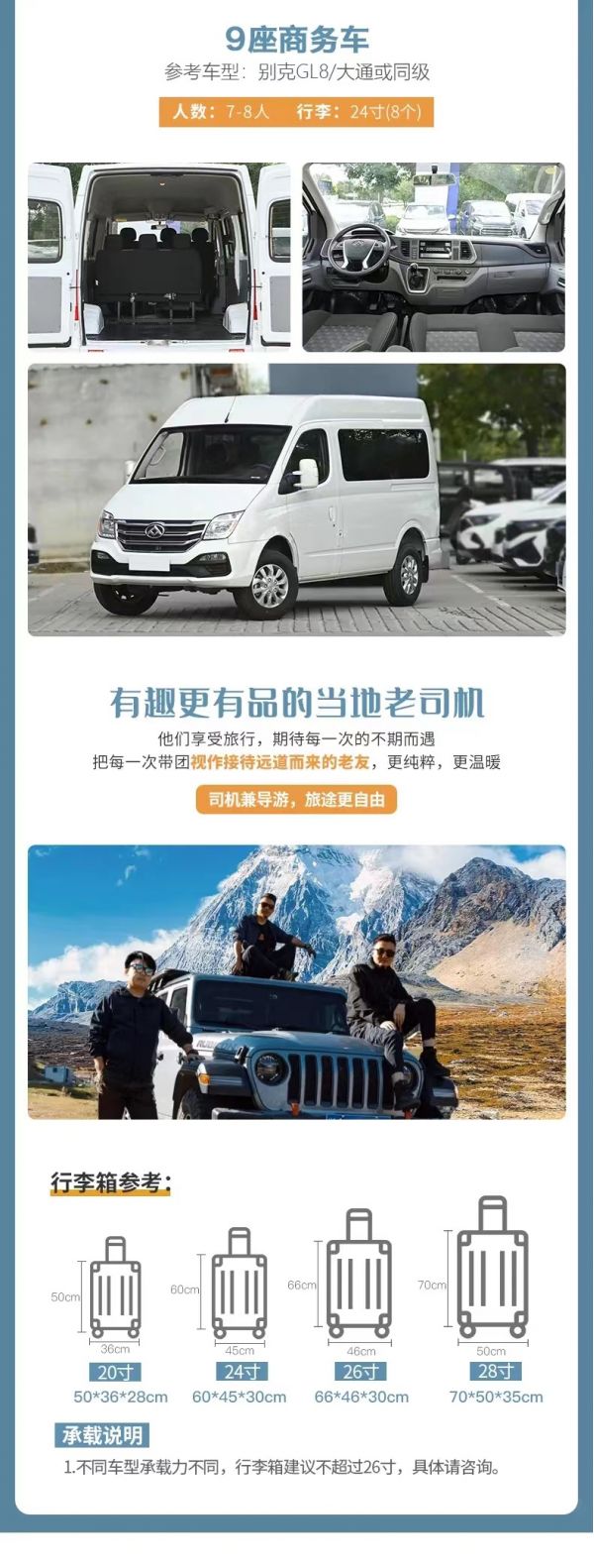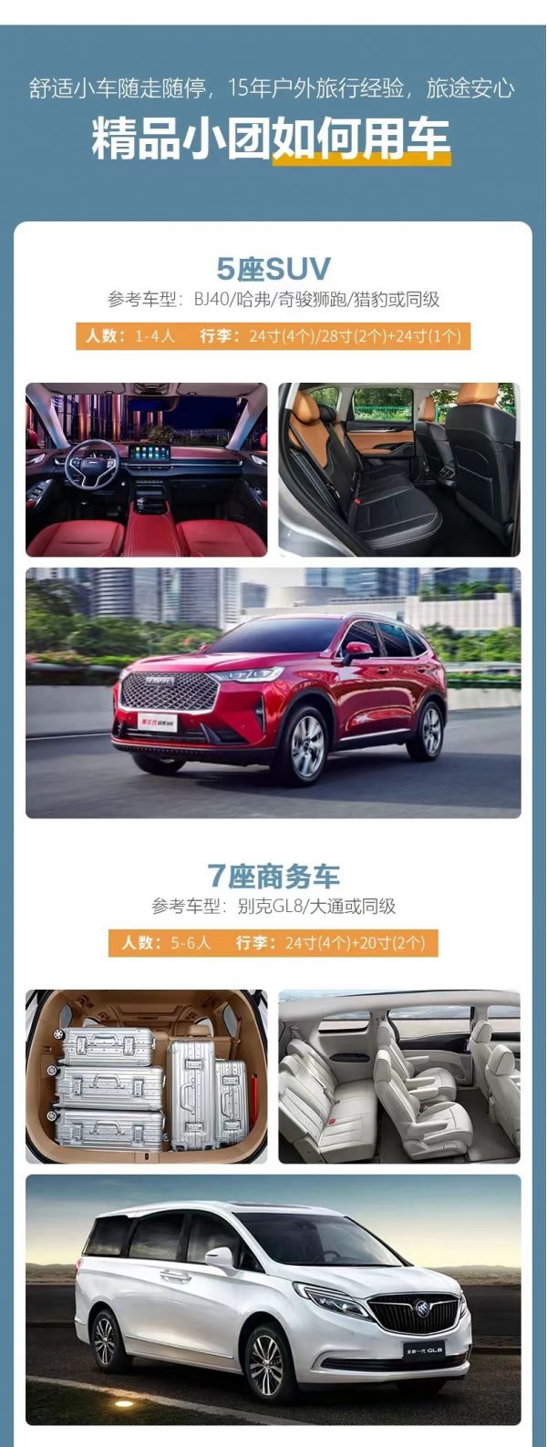 交通:2-8人VIP私享小團,全程舒適商務(wù)車出行,車型大小根據(jù)實際人數(shù)安排,保證一人一正座位,且由駕駛經(jīng)驗豐富的司機為您的出行保駕護航,報價包含車費、油費、停車費、維修費及司機勞務(wù)費。