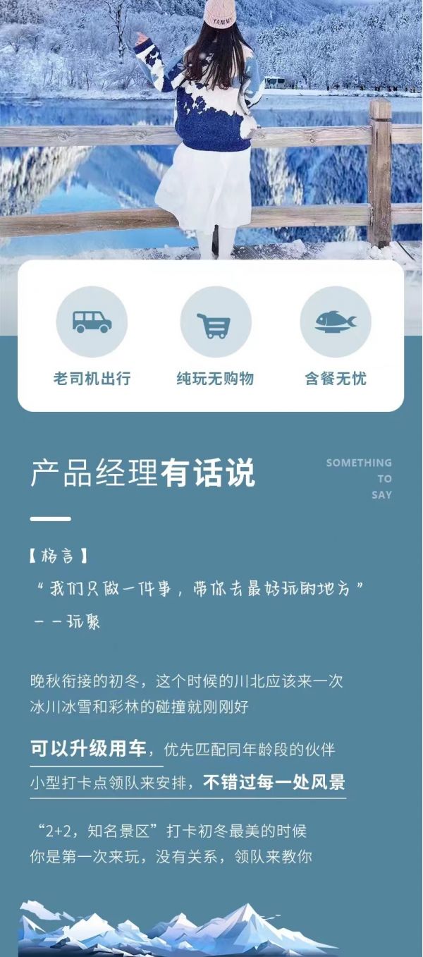 (3)特別提示:12月16日-3月31日期間黃龍索道停運(yùn),屆時(shí)需步行上下游覽黃龍景區(qū),敬請知曉。