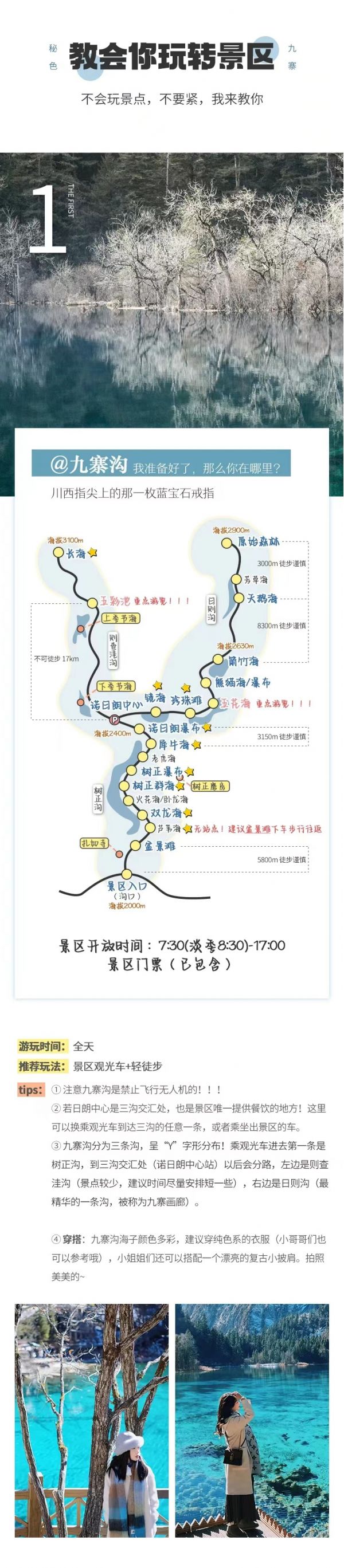 隨著季節(jié)的變化,九寨溝也呈現(xiàn)出不一樣的風(fēng)姿;深秋的九寨溝享譽(yù)世界,只見漸次經(jīng)霜的彩林深淺相間、錯(cuò)落有致,是“萬山紅遍,層林盡染”的最佳寫照,在漫山遍野濃烈的紅襯托之下,碧水更綠、藍(lán)天更藍(lán),呈現(xiàn)出光怪陸離的水景;待入冬,莽莽林海都覆上皚皚白雪,林海雪原似玉樹瓊花,潔白、高雅,是觀賞九寨六絕之“藍(lán)冰”和“雪峰”的最好時(shí)機(jī)。也因這不二的美,這里也是許多熱門影視劇里的取景場地,今天我們就在這個(gè)大小熒屏收錄過的仙境來一場旅拍,由專業(yè)駐地?cái)z影師為大家拍攝漢服/藏裝旅拍大片,每人2張精修電子照、底片全送,定格住旅程最美的瞬間。