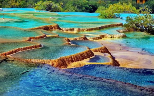 【黃龍風(fēng)景區(qū)】。黃龍風(fēng)景區(qū)擁有獨(dú)特的景觀、原始的生態(tài)和豐富的資源,其鈣化景觀非常壯觀,鈣化邊石壩彩池、鈣化灘、鈣化扇、鈣化湖、鈣化塌陷湖、坑,以及鈣化瀑布、鈣化洞穴、鈣化泉、鈣化臺(tái)、鈣化盆景等一應(yīng)俱全,堪稱人間仙境。主景區(qū)黃龍溝位于岷山主峰雪寶頂下,面臨涪江源流,似中國人心目中"龍"的形象,因而歷來被喻為"中華象征"。