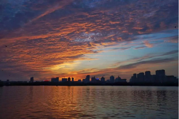 晚霞的形態(tài)各異,有的像一只展翅高飛的鳳凰,有的像一條奔騰的江河,有的像一朵盛開的鮮花,有的像一團(tuán)燃燒的火焰……它們?cè)谔炜罩斜M情地舞動(dòng)著,變幻著,讓人目不暇接。