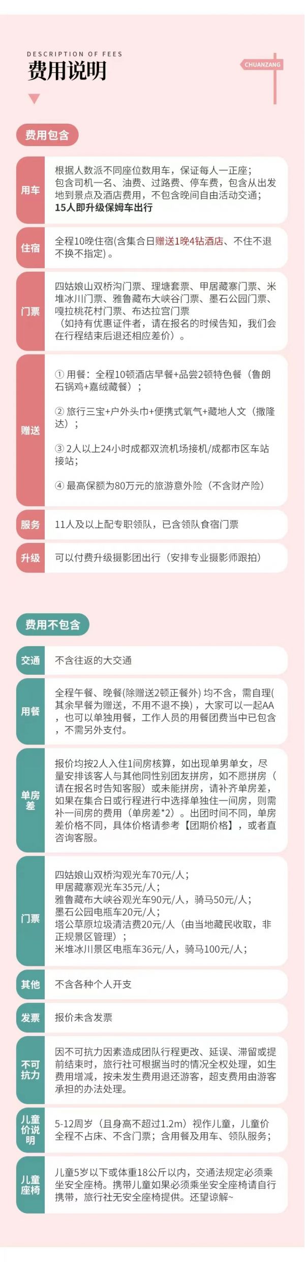 (3)此日行程較長,可能會稍感枯燥,下午的金川才是我們今日的行程重點,所以沿途停車較少,敬請見諒。