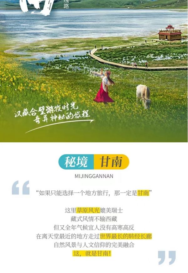 即日起甘加秘境門票內(nèi)暫不包含白石崖寺、溶洞,如需要游覽寺院內(nèi)或進(jìn)溶洞需要另行購票。購買(車票+門票)套票的游客按景交車固定路線游覽,可前往八角古城站、白石崖寺前站,白石秘境觀景臺(tái)、路過星空草原到達(dá)游客服務(wù)中心,作海寺可自行前往,給廣大游客帶來不便,還望諒解。)