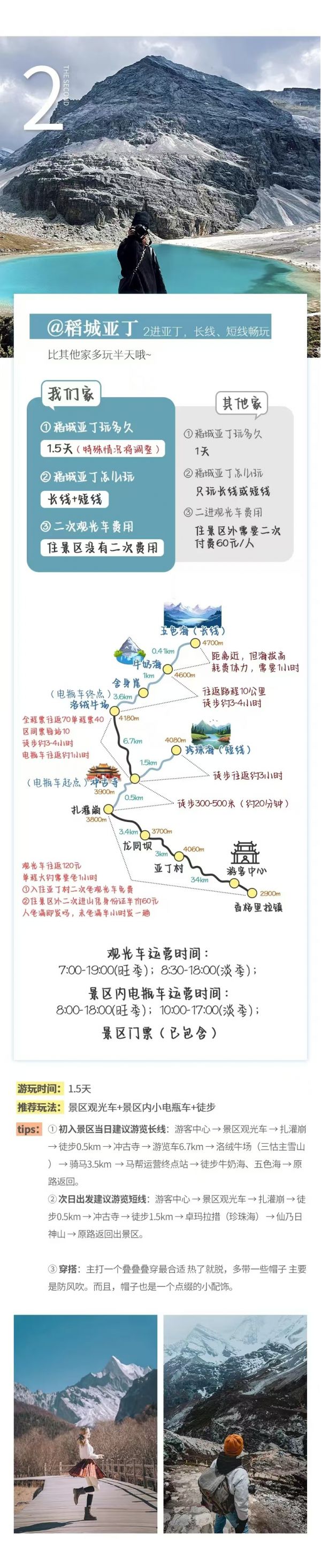 (1)領(lǐng)隊(duì)和車(chē)不能隨游客進(jìn)入亞丁景區(qū),如果當(dāng)天入住亞丁村,請(qǐng)?jiān)笖y帶好洗漱用品和貴重物品,不帶的行李放在車(chē)上。? 繼續(xù)向理塘方向出發(fā),傍晚時(shí)分到達(dá)目的地新龍或甘孜入住酒店。