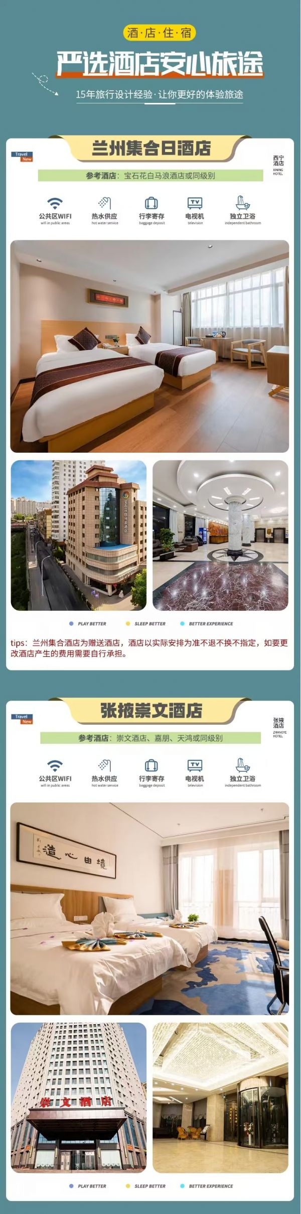 tips:蘭州集合酒店為贈(zèng)送酒店,酒店以實(shí)際安排為準(zhǔn)均不退不換不指定,如要更改酒店產(chǎn)生的費(fèi)用需要自行承擔(dān)。