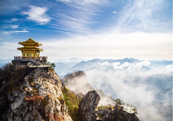 早餐后乘車(chē)赴道教文化圣地---老君山風(fēng)景區(qū)AAAAA,乘坐奧地利進(jìn)口的中靈索道(約15分鐘),游覽人間仙境老君山金頂(此處參觀游覽約3小時(shí)),觀救苦殿、飛來(lái)石、傳經(jīng)樓、觀音殿、老君廟,高空玻璃觀景臺(tái)馬鬃領(lǐng)等景點(diǎn);游覽舍身崖、南天門(mén)、聚仙宮、倚天劍、玉皇頂、馬鬃嶺:參觀世界規(guī)?;◢弾r峰林奇觀,高空俯瞰,座座山峰如一個(gè)個(gè)自然盆景在云霧漂渺間若隱若現(xiàn),如若仙境!
