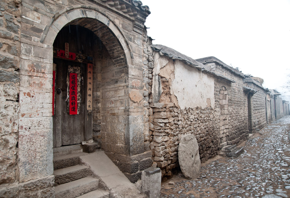 這里的房屋大多是四合院,還有古色古香的四合樓院,沿白色石階登上石樓,放眼四望,周?chē)且谎弁坏竭叺陌谆ɑǖ氖渴?,門(mén)與門(mén)相對(duì),戶與戶相連。據(jù)介紹,這里房屋建筑規(guī)范明確,東西為街,南北為巷,不通為胡同。全村共有六街七巷十八胡同,總長(zhǎng)3700多米,街巷全是青石鋪就,街巷串連的石頭房屋4000多間。