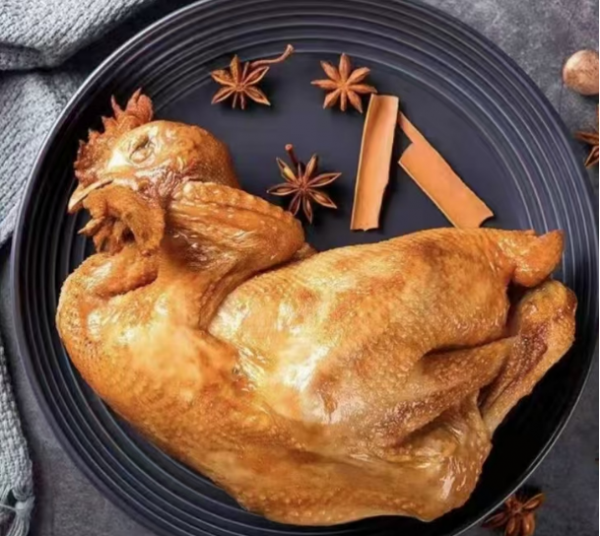 其制作選魯西北優(yōu)質(zhì)雞種,經(jīng)多道預(yù)處理工序整形成元寶狀,以十幾種天然香料入老湯,先武火后文火燜煮,造就肉爛骨酥、香而不膩的獨(dú)特風(fēng)味。